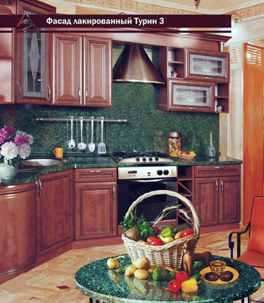 Особенность кухни Турин в том, что она может стать украшением любого помещения. Даже если площадь не позволяет «разгуляться», этот маленький угловой итальянский гарнитур прекрасно в него впишется. А удобная угловая модификация формирует комфортную рабочую зону, где хозяйке будет приятно находиться и готовить блюда.
