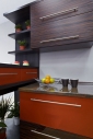 Достойным выбором станут кухни из шпона, предлагаемые нашей компанией. Сохраняя все декоративные преимущества натурального дерева, такая мебель обладает практичностью современных материалов. Оригинальная природная фактура различных пород дерева, используемых на нашей фабрике для производства шпона, позволит мебели гармонично вписаться в интерьере вашей кухни. При этом основной мебельный каркас, выполненный их более технологичных и дешевых МДФ и ДСП, обеспечивает множество вариантов конструктивных решений и долголетнюю службу нашей продукции. Эта модель привлекает в первую очередь удивительными дизайнерскими находками по отношению к деталям. Основная идея кухни очень современна и рациональна. Творчество лаконизма — так можно коротко охарактеризовать данную модель. Гармоничное сочетание прямых линий и открытых пространств с нетривиальным подбором цветовой гаммы придает этой кухне нетрадиционный характер. Современный чистый дизайн, стильная фурнитура — все предельно рационально и одновременно очень уютно. Облицовка фасадов кухни Тафель зебрано + эмаль придает пространству больше декоративности. Удобство использования внутренних объемов усиливается благодаря увеличенному масштабу элементов. Объемно-цветовое решение данной модели задает строгий, серьезный тон. СТОИМОСТЬ от 15 000 руб. п./м.