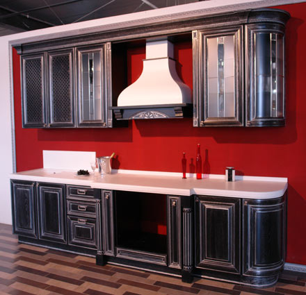 Для тех, кто ценит очарование английской классики, кухня из массива черешни, окрашенной в черный цвет с серебрянной патиной. В качестве роскошного дополнения фигурные опоры, карнизы и ручки со стразами Сваровски. Cтудия кухни «Баккара» Для вас: - Кухонная мебель по индивидуальным проектам. - Индивидуальный дизайн бесплатно. - Широкий выбор материалов и комплектующих (пр-во Германия, Италия, Австрия). - Комплектация встраиваемой бытовой техникой.