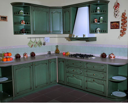Фасады: массив сосны Столешница: искусственный камень с влитой мойкой Стеновая панель: керамическая плитка